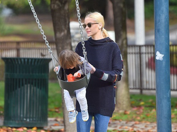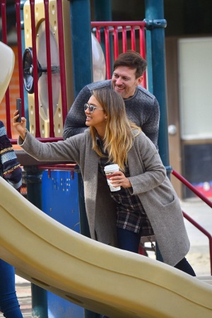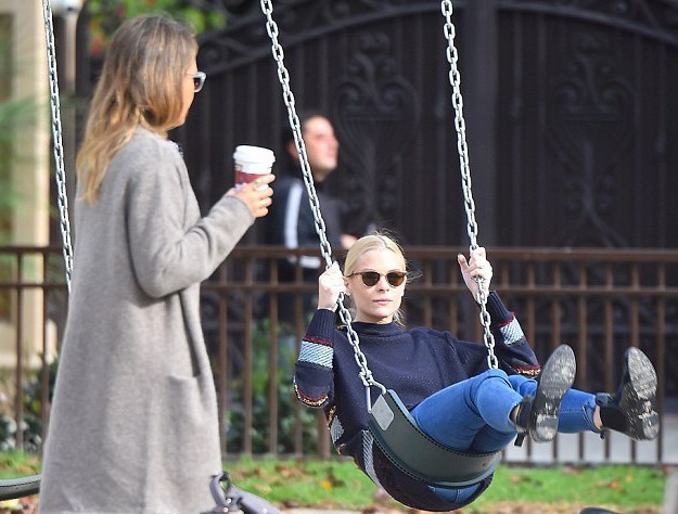 Джессика и Джейми тоже не удержались от детских забав, покачиваясь на качелях во время прогулки.
