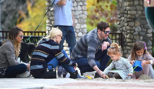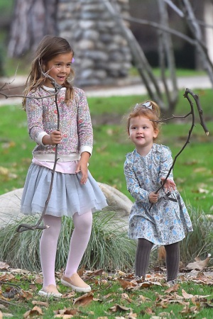 Обе актрисы выглядели непринужденно, наблюдая как их маленькие дети играли и дурачились друг с другом.