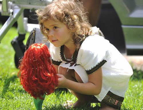 Хонор играла на детской площадке со своей куклой Ариэль, а малышка Хэйвен веселилась, глядя, как мама пускает мыльные пузыри.