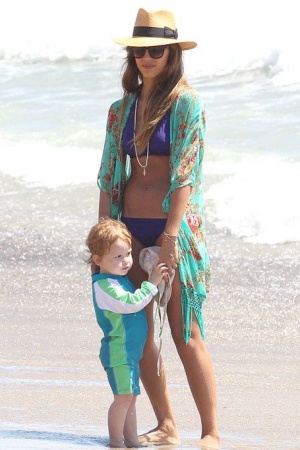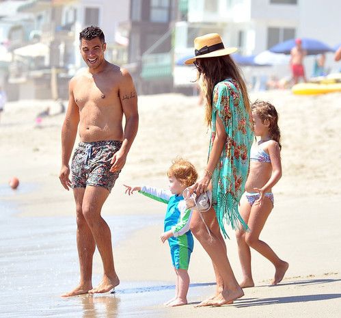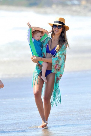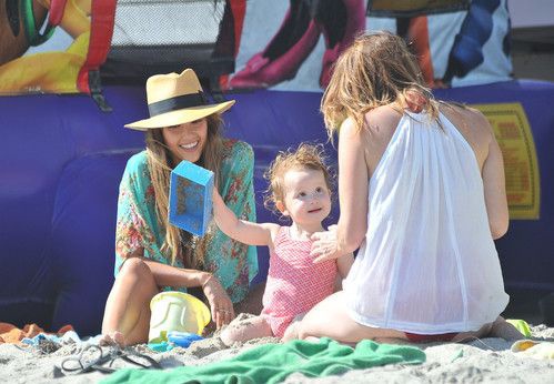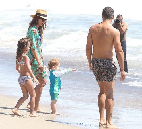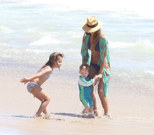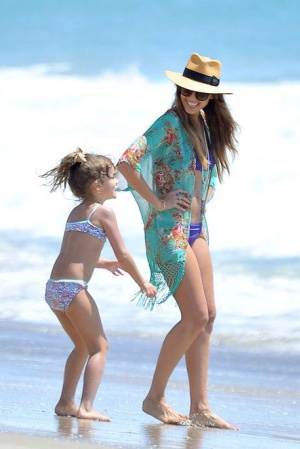 Джессика Альба провела выходные на пляже с семьей в Малибу.