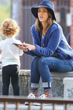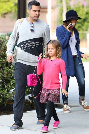 Семья была в отличном настроении, в то время как старшая дочь Онор изучали игровую площадку под присмотром отца, звезда фильма "Удачи, Чак" проводила время с младшей дочкой Хайвен .