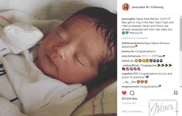 Американская актриса Джессика Альба, которая на днях стала матерью в очередной раз, показала в Instagram снимок своего новорожденного сына. Фотография за несколько часов собрала более 800 тысяч лайков пользователей.