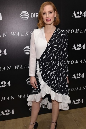 В США начинается прокат фильма "Женщина ходит первой" – независимой картины с Джессикой Честейн и Сэмом Рокуэллом в главных ролях, впервые представленной еще в сентябре прошлого года на кинофестивале в Торонто. В преддверии старта в кинотеатрах Джессика Честейн посетила специальный показ "Женщины" в Нью-Йорке в элегантном платье от Givenchy.