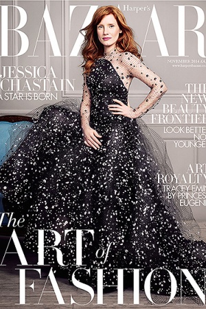 Голливудская актриса Джессика Честейн стала героиней ноябрьского номера издания Harper's Bazaar UK, на страницах которого она появилась в наряде из последней коллекции Christian Dior, вдохновленной стилем Марии-Антуанетты, сексуальном и в тоже время романтичном платье темно-зеленого цвета от Valentino и роскошном творении Armani Prive - на обложке.