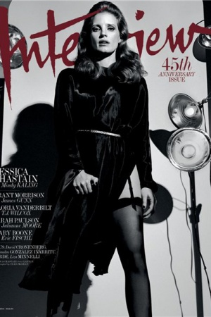 Джессика Честейн украсила октябрьскую обложку журнала Interview, приняла участие в черно-белом фотосете и дала откровенное интервью Минди Калинг. В начале 2010-х актриса была почти никому не известна, но уже к концу 2011 стала мировой звездой. Именно в этом году на экраны вышли шесть фильмов с ее участием, включая "Древо жизни", "Укрытие" и "Прислугу", за роль в котором она была номинирована на "Оскар".