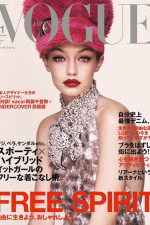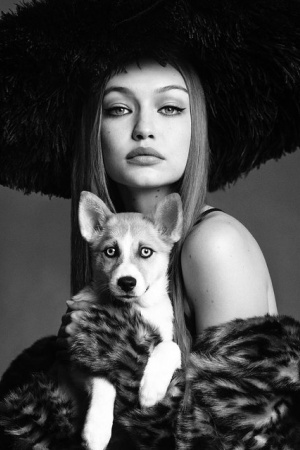 22-летняя модель Джиджи Хадид снялась в черно-белой фотосессии для октябрьского номера японской версии журнала Vogue. Красотка позирует в вязаном топе, леопардовом костюме, странных шляпах и с милым щенком. Также известное издание представило две обложки с Джиджи.