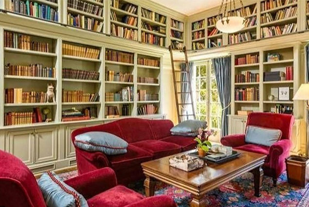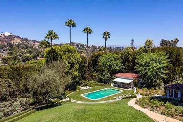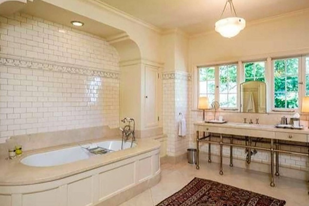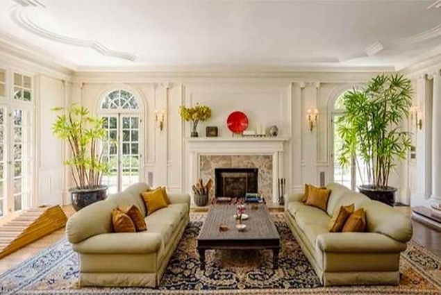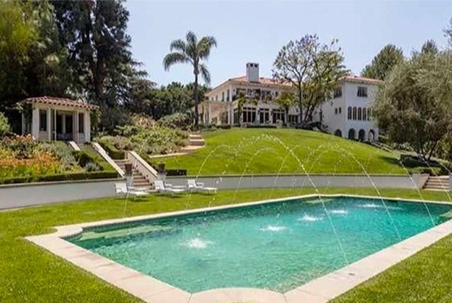 На участке площадью около гектара расположено основное строение, а также два домика для гостей. На прилегающей территории имеется бассейн с фонтаном и большой сад, а в апартаментах – шесть спален и десять ванных комнат.