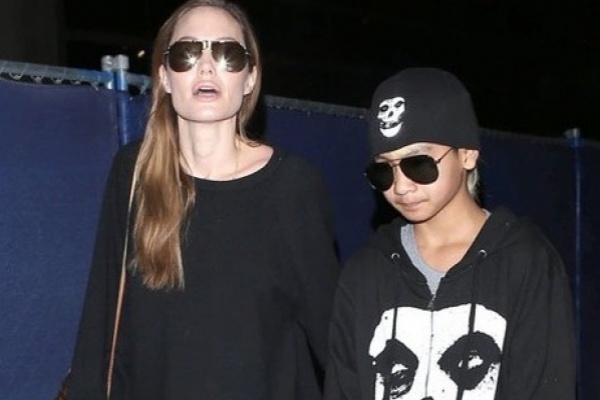 На фото актриса и ее сын оба одеты в черное, они путешествуют вместе отдельно от остальной большой семьи. Актриса усыновила мальчика в 2002-м году в Камбодже, когда ему было семь месяцев.
