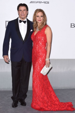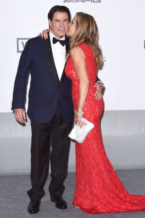 Кстати, Джон Траволта прибыл на бал не сам, а в приятной компании своей жены Келли Престон. Супруга выглядела прекрасно в красном платье в пол из тонкого кружева и, в отличие от мужа, в ее образе не было ни единого намека на комичность.