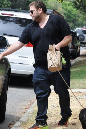 На днях папарацци опубликовали шокирующие снимки звезды фильмов "Мачо и ботан" и "Волк с Уолл-Стрит". 30-летний актер Джона Хилл явно прибавил в весе. В таком виде Хилл выгуливав своего домашнего любимца и, конечно же, не забыл прикупить себе еды в фаст-фуде.