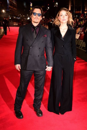 В течение всего вечера актриса выглядела заботливой подругой, ни на минуту не отпуская руку Джонни в Эмпайр Лестер-сквер, Лондон, Англия, где проходила премьера.