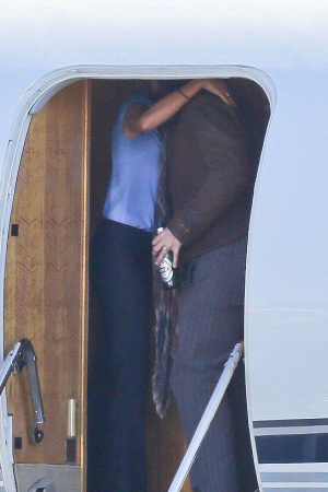 Теперь знаменитый актер был замечен обнимающимся в своем частном самолете с еще одной блондинкой, лица которой так и не удалось рассмотреть.