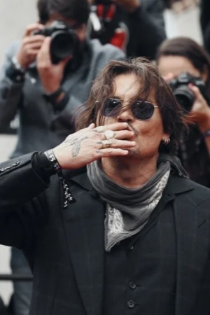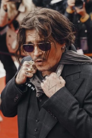 Для светского мероприятия Джонни выбрал темный костюм в клетку с черной рубашкой, которую расстегнул, продемонстрировав свою татуировку на груди. Дополняли образ платок, который актер завязал вокруг шеи, ожерелье с аксессуаром к гитаре и очки.