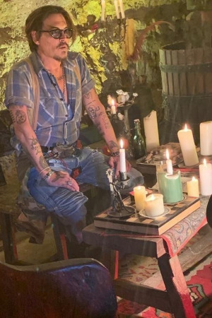 "Привет всем... снимаю что-то для вас сейчас... дайте минутку", - отметил под фото Депп.
