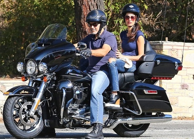 Всем известно, что Джордж Клуни давно пристрастился к мотоциклам. 55-летний актер колесил на шикарном чоппере в компании 38-летней супруги Амаль Клуни. Звездную чету папарацци запечатлели в Лос-Анджелесе.