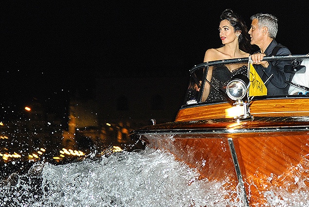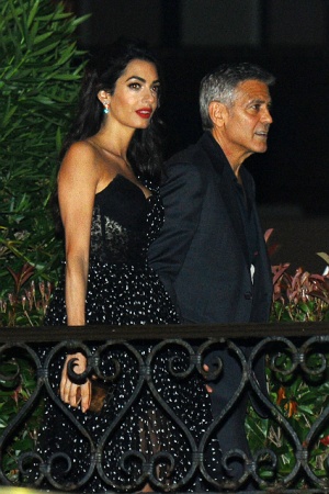 Джордж и Амаль, выйдя из отеля, отправились в ресторан. Как отмечают западные репортеры, Клуни – настоящий джентельмен: на борту лодки он нежно приобнимал супругу, а на выходе, как и подобает настоящему мужчине, подал ей руку и помог выбраться из лодки. Для романтического рандеву Амаль облачилась в черное платье в горох, а Джордж надел костюм.