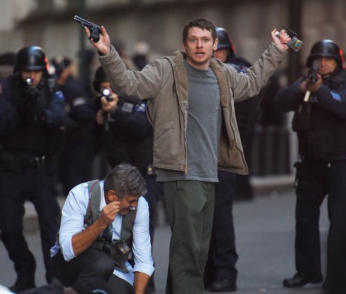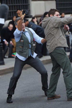 В Нью-Йорке продолжаются съемки остросюжетного фильма "Денежный монстр". Джордж Клуни и Джек О'Коннелл, исполняющие в картине главные роли, были замечены на Уолл-стрит во время работы над очередной сценой.