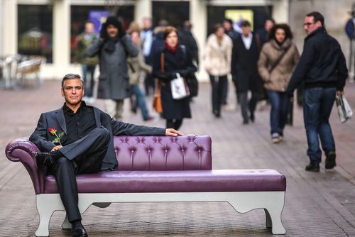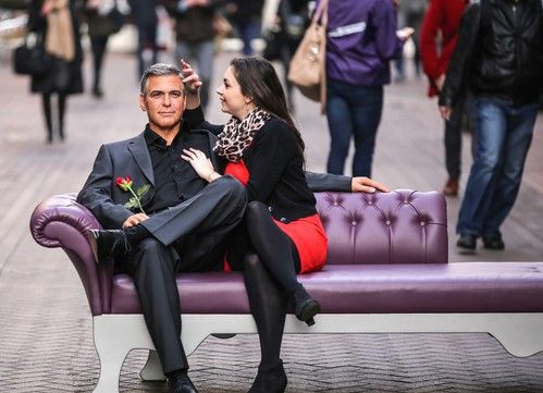 Представители музея мадам Тюссо решили сделать подарок жительницам Лондона ко Дню святого Валентина. Они выставили на улицу восковую фигуру Джорджа Клуни, чтобы все желающие смогли обняться с любимым актером.