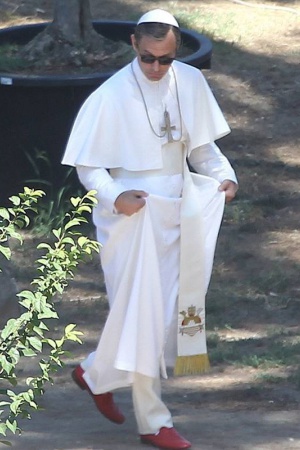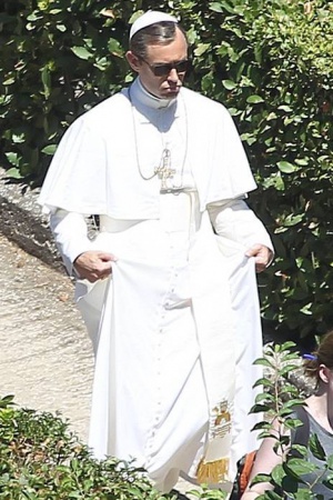 Джуд Лоу в своей актерской карьере сыграл множество ролей, но его последняя работа ни на что не похожа. 42-летний актер сейчас снимается в мини-сериале из восьми серий под названием "Молодой Папа", где играет Папу Римского Пия.