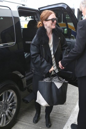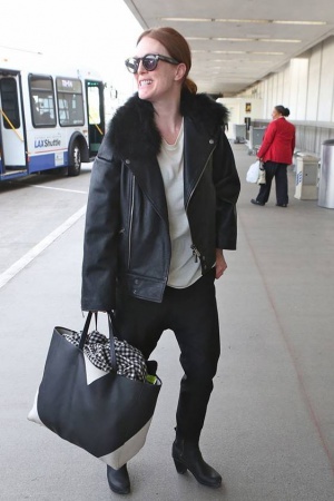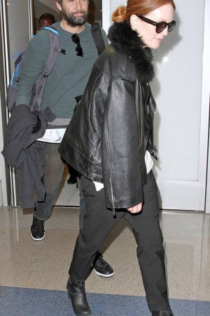 Джулианна Мур и ее муж Барт Фрейндлих были замечены в аэропорту Лос-Анджелеса. Пара возвращалась домой в Нью-Йорк. Они находились в Лос-Анджелесе в связи с премьерой фильма "Голодные игры: Сойка-пересмешница. Часть 1", в котором 53-летняя актриса исполняет одну из главных ролей.