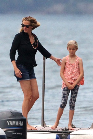 Папарацци засняли звездное семейство во время прогулки по озеру на небольшой лодке. Однако едва ли у фотографов был шанс сделать откровенные снимки, как это часто случается во время отдыха знаменитостей. Робертс продемонстрировала зевакам лишь скромный наряд и образцовое поведение.