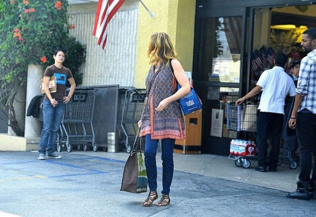 Звезды выглядела прекрасно. При выходе из супермаркета актриса то ли кого-то возмущенно звала, то ли кому-то кричала.