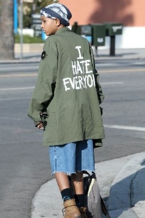 Недавно Уиллоу видели в Лос-Анджелесе в весьма странном одеянии. Поверх джинсового комбинезона девочка надела мешковатую куртку, напоминающую робу рабочего, с надписью I Hate Everyone, что переводится как "Я ненавижу всех". Выражение лица мисс Смит вполне соответствовало надписи: девочка была мрачной и сосредоточенной.