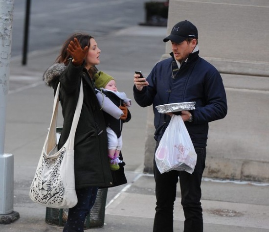 Дрю Бэрримор попалась в объективы с мужем Уиллом Коплеманом и дочкой Олив.
