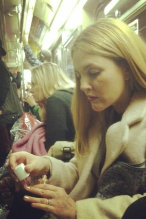 Голливудская актриса Дрю Бэрримор разместила в своем фотоблоге забавный снимок, вызвавший ажиотаж у подписчиков. На фото видно, как популярная красотка красит ногти, сидя в вагоне метро.