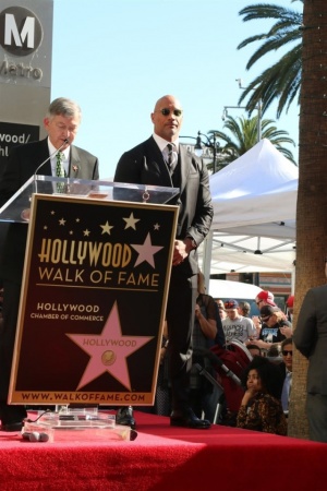 Казалось бы, еще несколько лет назад Дуэйн Джонсон, перебравшись с ринга в кино, снимался в малобюджетных комедиях типа "Зубной феи" - а теперь его имя официально красуется рядом с именами легендарных голливудских актеров на знаменитой Аллее славы. В Лос-Анджелесе состоялась торжественная церемония, в ходе которой была открыта именная звезда Дуэйна.