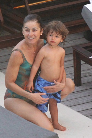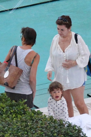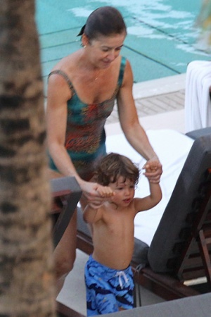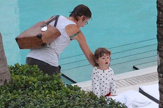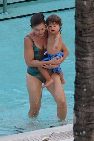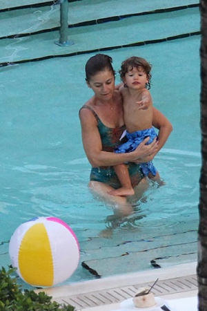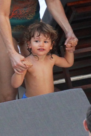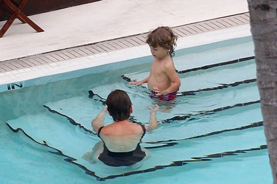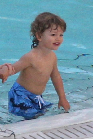 Двухлетний Лео - сын испанских актеров Пенелопы Крус и Хавьера Бардема - учится плавать в бассейне.