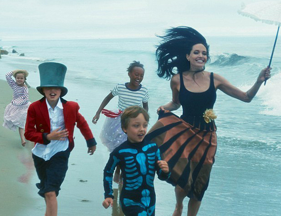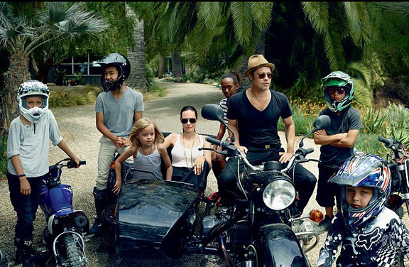 Фотография Анджелины украсила обложку нового номера журнала, а на страницах издания появилась эффектная фотосессия звездного семейства во Франции. Съемку проводила знаменитый фотограф Энни Лейбовиц (Annie Leibovitz).