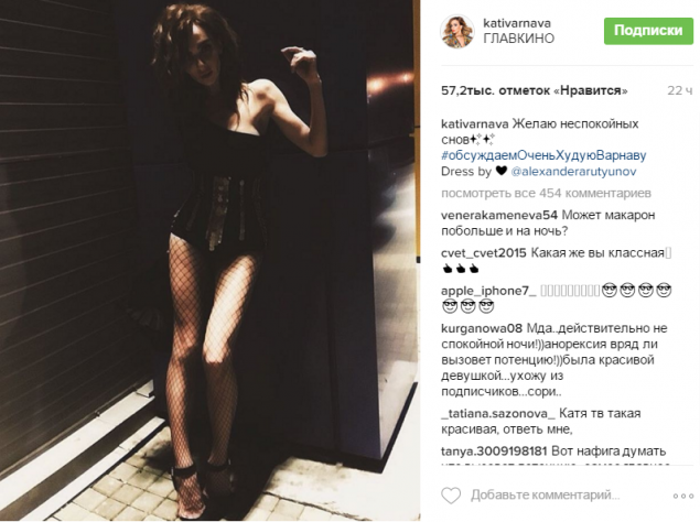 Однако, вопреки ожиданиям, вместо комплиментов, девушка услышала в свой адрес жесткую критику. "Анорексия… была красивой девушкой, ухожу из подписчиков, сорри", - написал один из поклонников Варнавы.