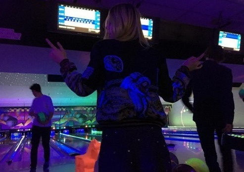 Юная актриса также показала фанатам, как проводит свой досуг – она выложила снимок из боулинга и похвасталась страйком.