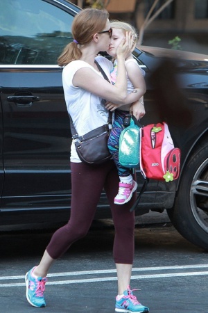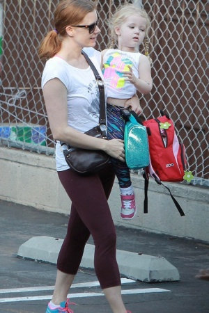 Эми Адамс вместе с дочкой попалась под прицел папарацци: малышка Авиана направлялась в детсад, а мама ее сопровождала, ободрив на прощанье крепким поцелуем.