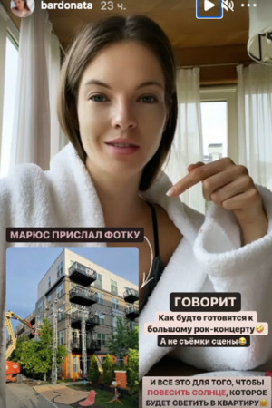 Редким кадром поделилась в Instagram жена режиссера Наталья Бардо. Она опубликовала в Stories фото со съемочной площадки.