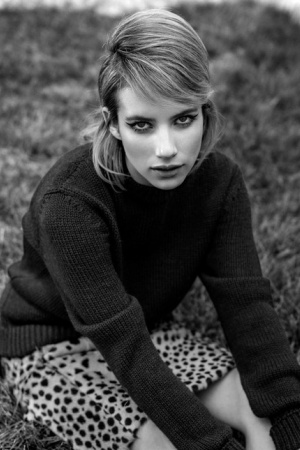 Звезда сериала "Американская история ужасов" Эмма Робертс для журнала Flaunt примерила на себя образ 60-х: высокая прическа, стрелки, мини.