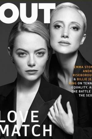 Эмма Стоун и ее коллега по новому фильму "Битва полов" Андреа Райзборо снялись в стильной черно-белой фотосессии для нового номера OUT Magazine.