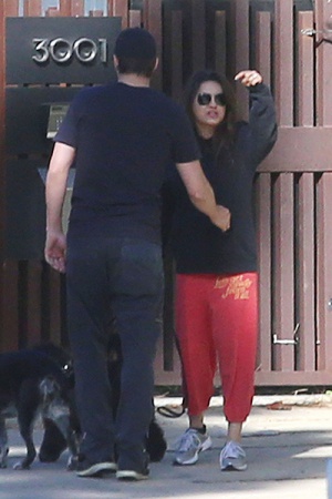 Возле ворот особняка знаменитостей уже караулили фотографы, которых Кунис сразу же заметила - между актрисой и представителем прессы завязалась словесная перепалка, в ходе которой Катчеру даже пришлось успокаивать подругу.