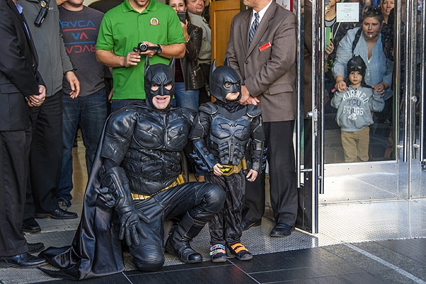 Знаменитость и Майлз должны были встретиться еще до этого, и не где-нибудь, а на сцене церемонии вручения премии "Оскар". Дело в том, что американцам хорошо знаком маленький мальчик: в ноябре прошлого года он стал героем благотворительного фонда "Загадай желание", по условиям которого организаторы претворили в жизнь главную мечту ребенка - стать "Бэт-ребенком" на один день.