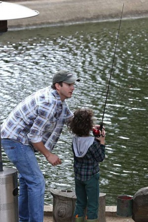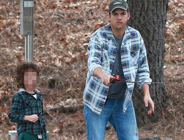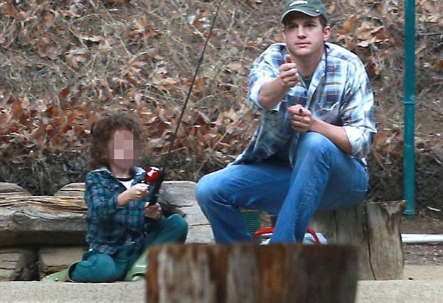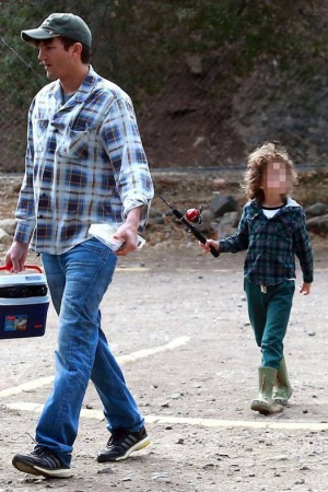 Эштон Катчер провел первую половину дня на побережье одной из рек в окрестностях Малибу. Актер в компании неизвестного малыша ловил рыбу.