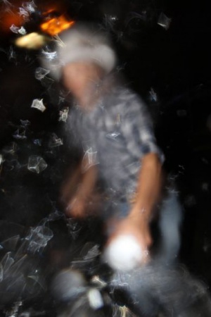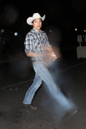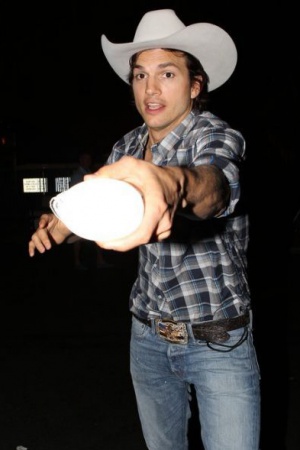 Папарацци преследовал актера и не унимался даже после пожеланий Эштона "Отстань!" и "Пошел вон!". Не выдержав, актер выплеснул в камеру фотографа стакан воды. Камера зафиксировала "побои".