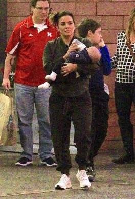 Помогал нести покупки охранник, в то время, как Лонгория кормила ребенка из бутылочки.