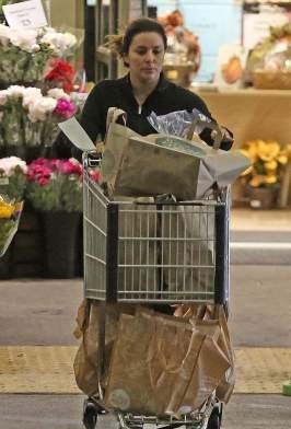 Звезда без макияжа и с повседневной одежде выходила из супермакета с полной тележкой овощей.