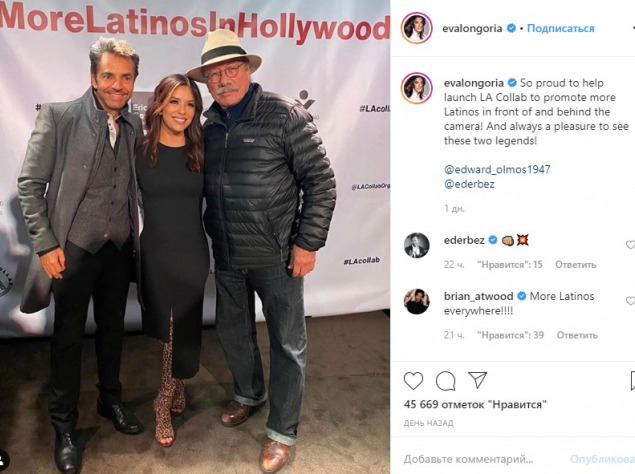 "Так горжусь тем, что помогли запустить LA Collab, чтобы продвигать больше латиноамериканцев перед и за камерой! И всегда приятно видеть эти две легенды!", - написала в посте с фото актриса.