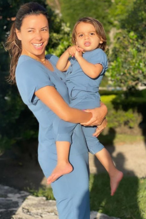 На новом таком фото Ева Лонгория держит своего сына Сантьяго на руках и широко улыбается, при том что ее сын, которому 19 июня исполнится три года, очень сосредоточен в кадре.