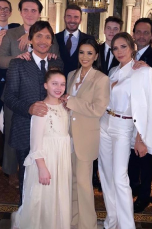 Дэвид и Виктория Бекхэм, которые летом отпраздновали годовщину со дня свадьбы, крестили своих детей – 14-летнего Круза и 8-летнюю Харпер. Их крестными родителями стали Ева Лонгория и Марк Энтони.