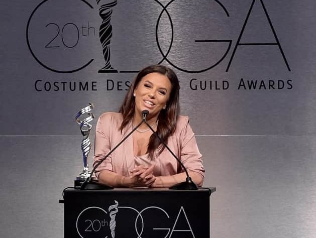 Пару дней назад Ева Лонгория блистала на красной дорожке в Беверли-Хиллз, где состоялось вручение наград Гильдии художников по костюмам. 42-летняя актриса восхитила гостей мероприятия цветущим внешним видом и нежным образом. Жена Хосе Бастона для вечера выбрала платье и накидку нежно-розового цвета Nili Lotan и босоножки нюдового оттенка.