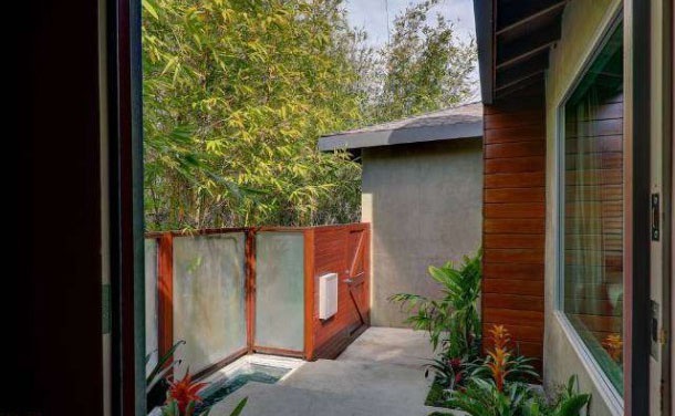 Как и многие дома с видом на Лос-Анджелес, дом Мендес имеет стены из стекла. В саду растут фруктовые деревья, есть небольшой огород, куриная ферма, а также душ на открытом воздухе и гидромассажная ванна из кедра.