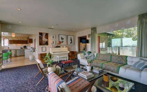 Архитектура дома, разработана дизайнерами под изысканные требования хозяев, включает в себя 3 спальни, 2 ванные комнаты и 530 кв. метров жилой площади в тропическом стиле. В доме есть хитрые "карманные" пространства, изысканные обои и станинные светильники в европейском стиле. Дом стоит на голливудских холмах, из окон открывается невероятной красоты вид на город.